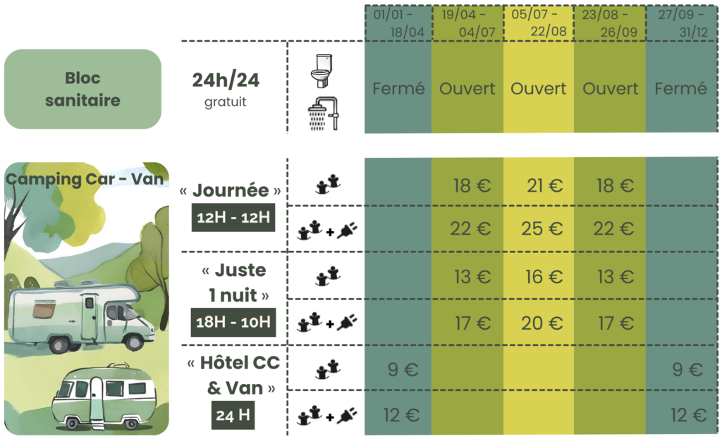 En basse saison, profitez d’emplacements stabilisés dans un environnement calme et propice à des vacances Nature.